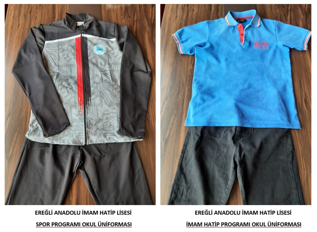 Okulumuzdaki mevcut spor programı ve İmam Hatip programı öğrencilerimizin giyecekleri üniformalarımız.